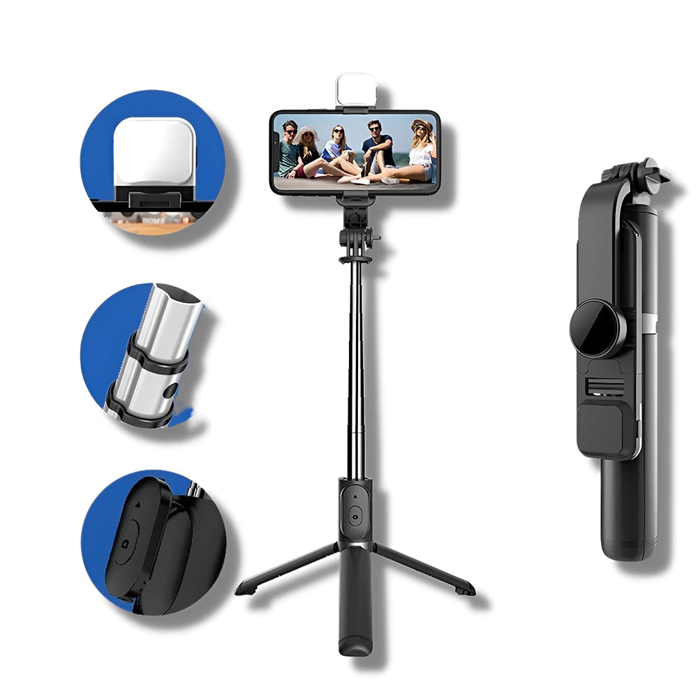 🤳 Perche Selfie 3‑en‑1 – Selfies Parfaits, Vidéos Stables, Éclairage Pro partout !