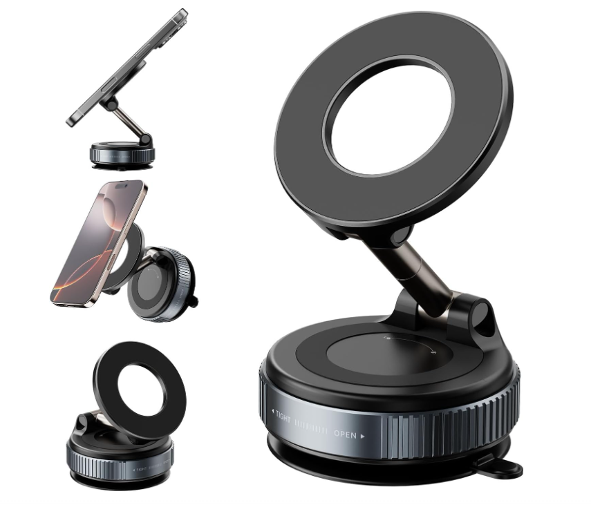 Sécurité Renforcée : La combinaison de la ventouse mécanique et de l'adsorption magnétique garantit que votre téléphone reste en place, même lors de trajets mouvementés.